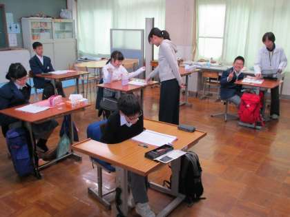 「昼食を食べる」 「学校に着く」 「家に帰る」 「寝る」 など、生活に必要な言葉を英語で言えるようになることが目標の授業です。