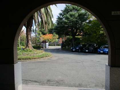 木々が色づいてきて、校門の外側がとてもきれいです。