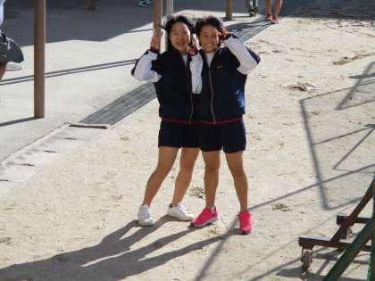グランドに出ました。冷たい風も吹いて、とても寒いです。