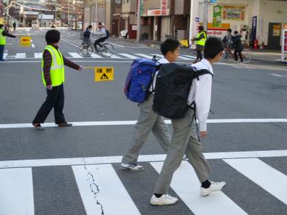 寒い朝になりました。今日は15日、安全の日です。毎月この日は学校運営協議会の活動の一環として、教職員と共に私も大通りの交差点に立っています。