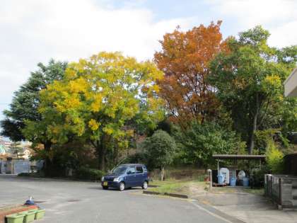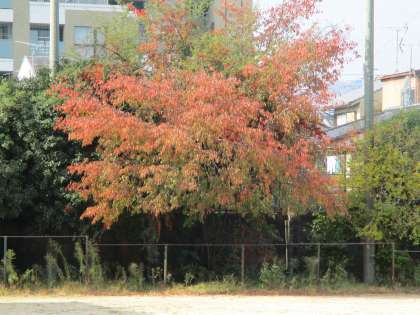 校内外の木々が空色に染まってきました。