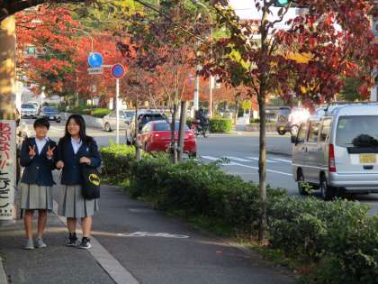 紅葉がとても美しくなってきました。空気も澄んで学校の周りの景色がってもう美しいです。こんな中を登校してくる生徒は幸せですね。