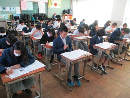 教科は社会。ざっと見ただけですが、皆さんしっかりと解答用紙を埋めていました。