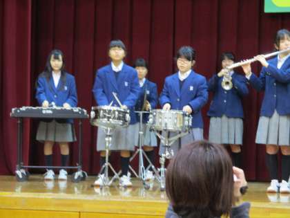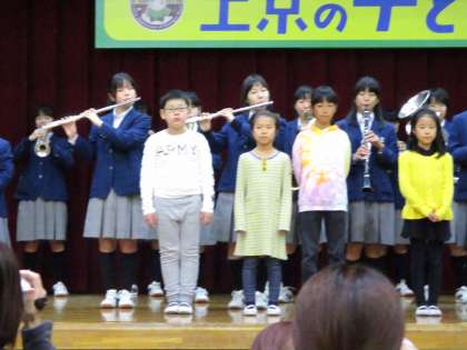 上京子どもまつりが二条城北小学校で行われ、オープニングのファンファーレを本校の吹奏楽部が担当しました。