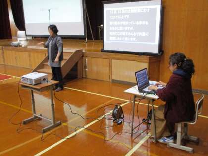 総合司会は上村先生、手話は中村先生、パソコンテイクによる情報保障は小嶋先生です。