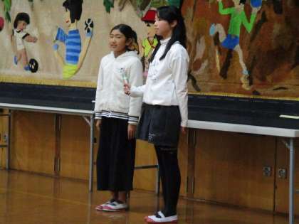 児童代表の終わりのことばと校長先生のご挨拶です。児童数が少ないので午前中で全部が終わるのですね。