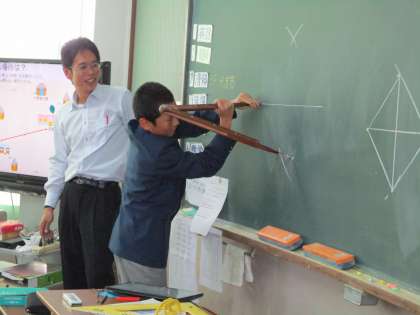数学ではコンパスと三角定規だけを使って、ひし形を作図する方法を考えます。