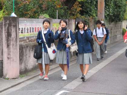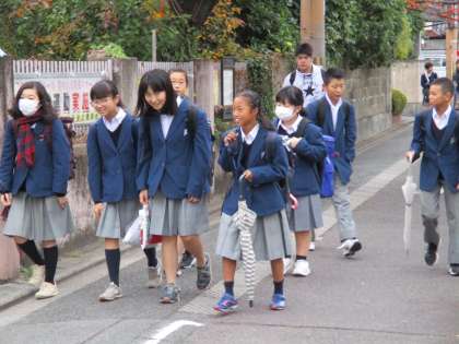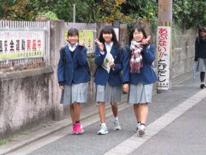 楽しそうに会話をしながらやってくる生徒、私の前で立ち止まってポーズを作る生徒、色々です。