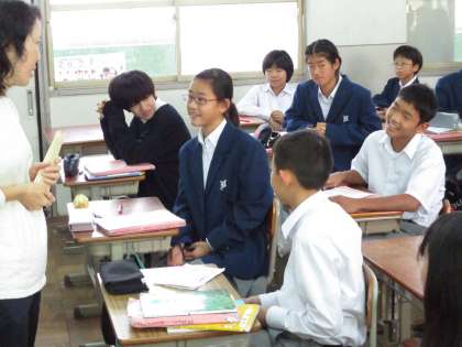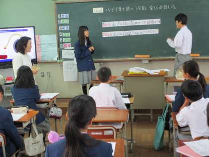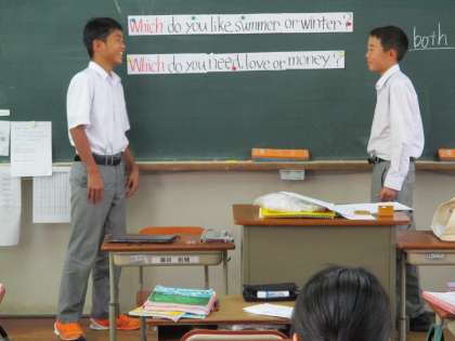 1組は英語です。2人一組で会話の練習です。
