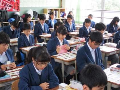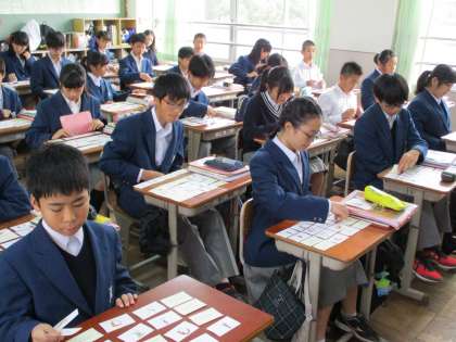 3組は4時間目になりました。教科は英語です。授業の最初はこうしてカードを使って英語に慣れさせる目的があります。