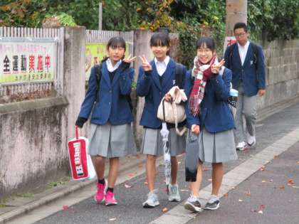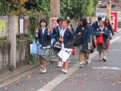 時雨が降る朝になりました。その分寒く感じます。でも、生徒たちは今日も元気に登校してきました。