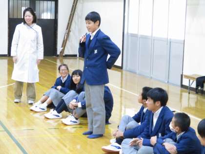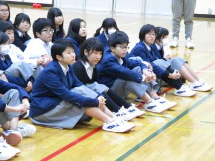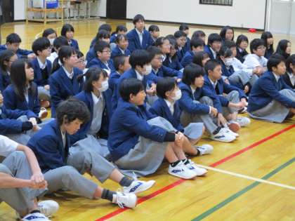委員長のことばに頑張る気持ちを高めています。