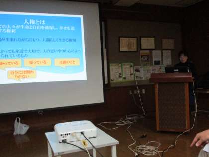 あいさつの後、正親小学校の辻元校長が人権についてのお話をしてくださいました。