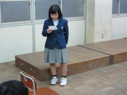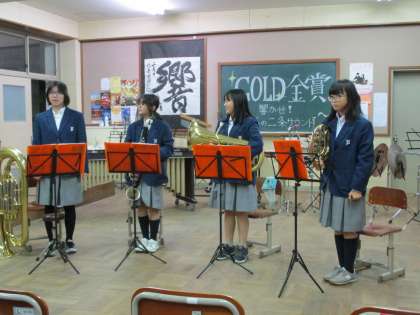 「吹奏楽部より連絡です。今日の4時30分から音楽室で校内コンサートを行います。どうぞ、お越しください。」