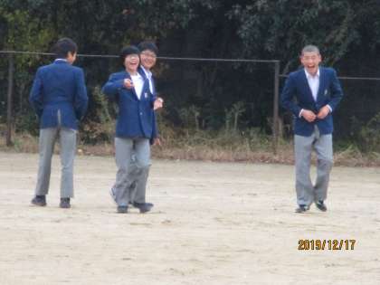 雨が小降りになった途端、グランドに飛び出てきた人たちがいます。