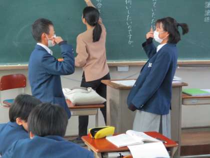電話を掛けるという想定でみんなの前でやっていました。なかなか見応えがありました。
