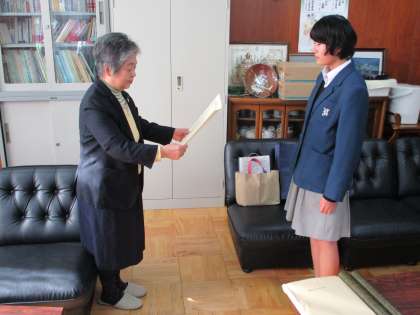 人権についての作文(「人権作文コンテスト」)に応募した人の中で、2人が入賞しました。