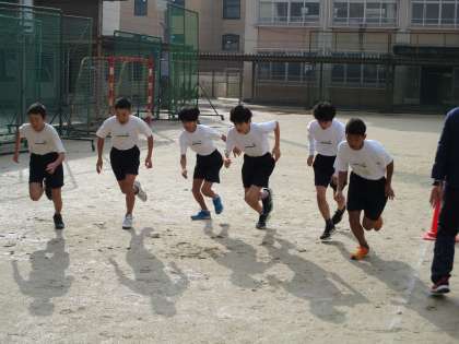 1年は体育。学年体育のはずが、2・3組が学級閉鎖で1・5組だけとなりました。