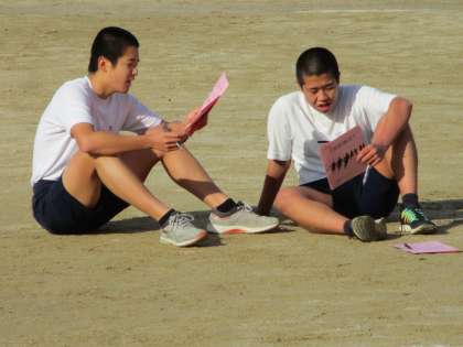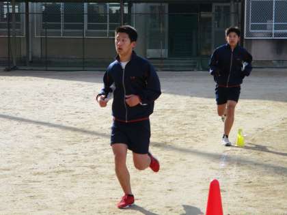写真のように、入っている生徒がちらっと右側を見るのはそこに大きなデジタル時計があるからです。走りながらラップタイムを見ているのです。