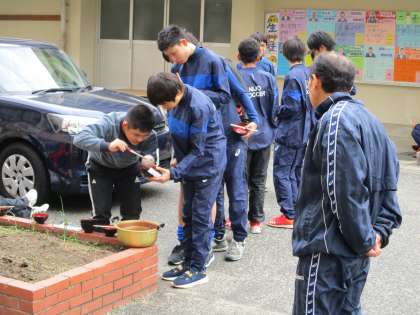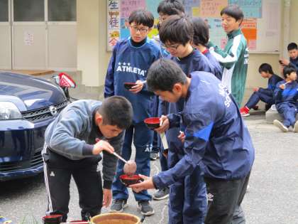 グランドで練習した後、朝から顧問の先生が作ってくれていたぜんざいをみんなで食べました。私も頂きました。美味しかったです。