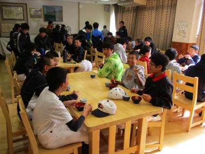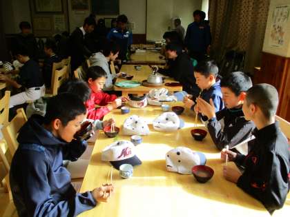 郊外へランニングへ行っていた野球部も、ぜんざいのご相伴にあずかりました。