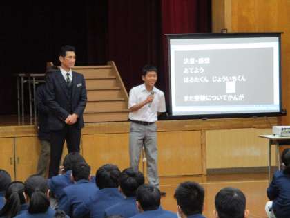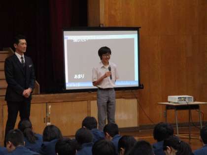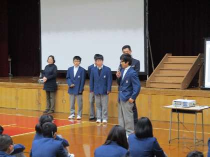 学校長の話の後、いつもの通り感想や決意を述べてもらいました。