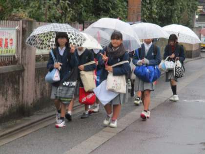 今日は1月のあいさつの日。ところがあいにくの雨です。激しい降りは収まりましたが、傘は必要です。