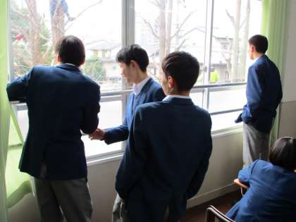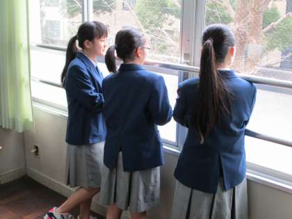 窓の外が気になっているのは、外にあるイチョウの木の枝がバッサバサ切られているからです。