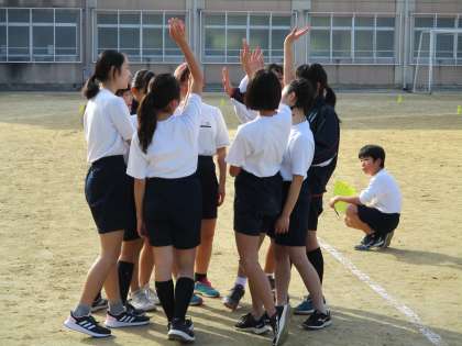 後半に走る女子たちが、出走前に掛け声を掛けました。