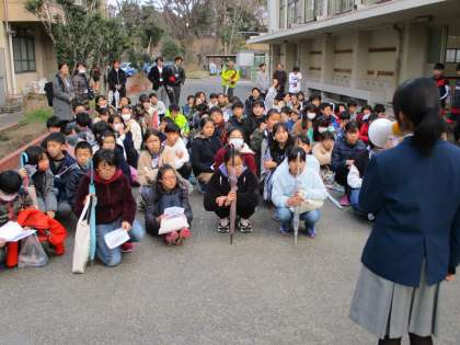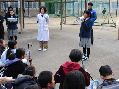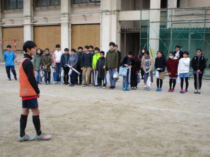 最後に全体が集まって終わりの会を行いました。 部活動キャプテンの代表があいさつをしました。