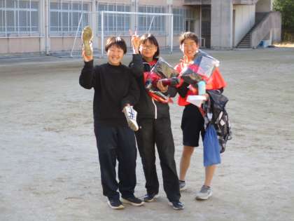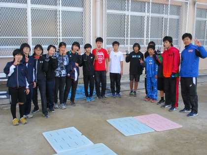 グランドで活動しているのは陸上部。少しストップしてもらって記念撮影です。