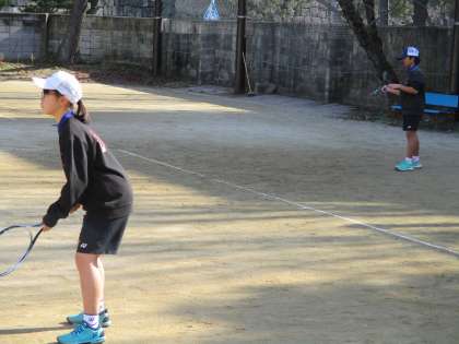 今日は殆どの部が活動を休止している中で、テニス部は花山中学校を招いて練習試合をしていました。