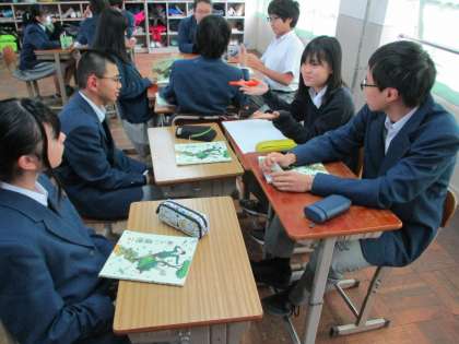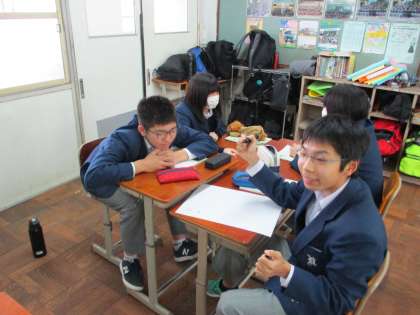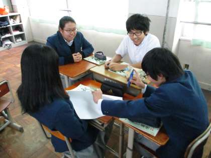 グループで話し合っているのは、「電車の中で迷惑だと感じるベスト5」です。
