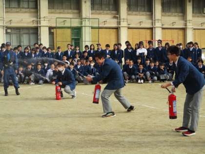また、車一台くらいの距離から使うこと、15秒くらいしか消化液が出ないことも学びました。
