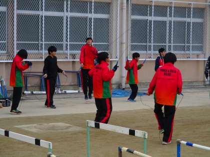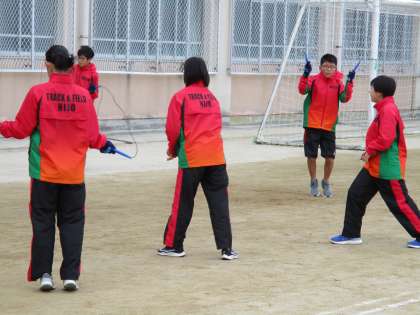 土曜日の午前中、グランドでは陸上部が練習をしていました。