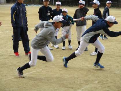 陸上部が使った後のトラックでリレーをして楽しんでいました。