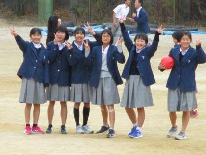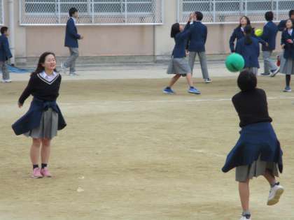 暖かかったので昼休みには多くの生徒がグランドへ出てきました。