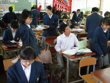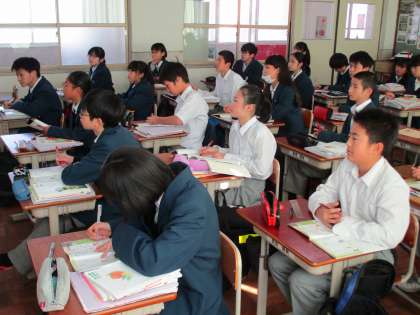 国語の時間は文法の学習でした。なかなか難しく、理解に苦しんでいる生徒もいたようです。頑張ってください。