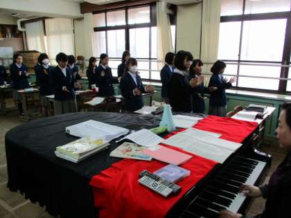 2組の音楽の様子です。校歌、エーデルワイス、漕げよマイケルなどを熱唱していました。特に、手拍子を入れて歌っているところが可愛いかったです。