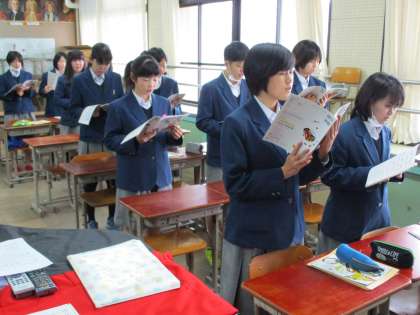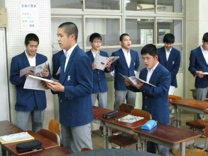 音楽の時間には「旅立ちの日に」の練習です。男子が頑張っていました。