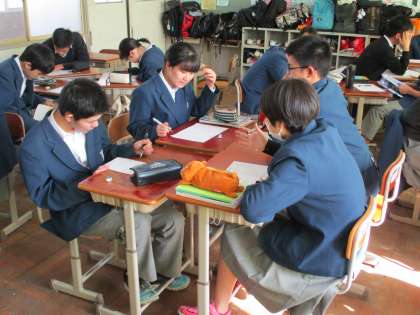 課題に取り組んでいます。もちろん、うちの学校だから教え合いはOKです。