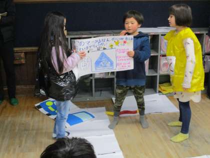 3年の子どもたちは、「どうしたら1年生に上手く伝えられるか」という観点から一生懸命に考えていました。