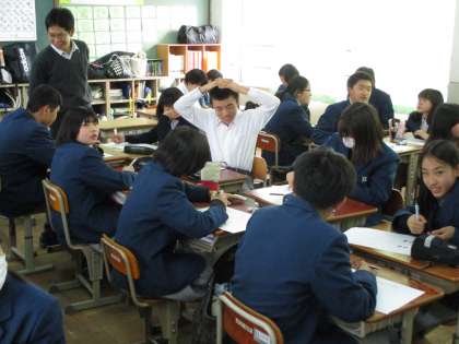 題材は、1年生の教職員が作った架空の物語です。登場人物も1年の教職員が声を担当しています。