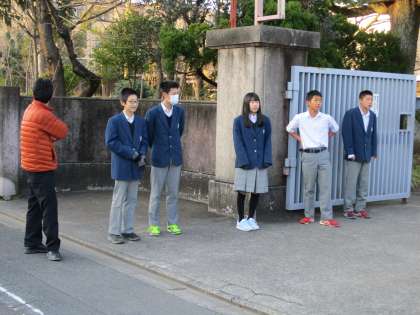 昨日の「あいさつの日」に参加できなかった人が今日校門に立ってくれています。