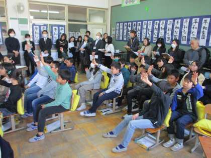 2時45分〜、二条城北小学校で外国語活動の研究授業があったので観に行ってきました。