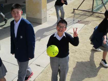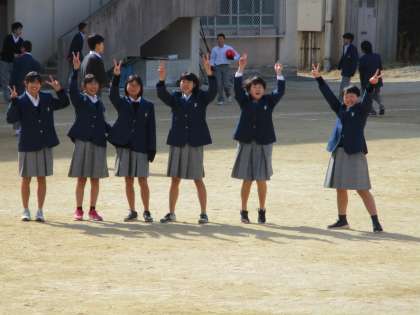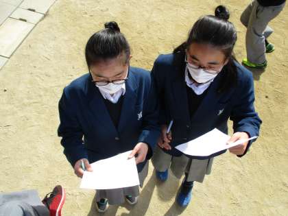 いつもはバレーボールを楽しんでいる子たちが居ないと思ったら、英語科の課題をやっていました。