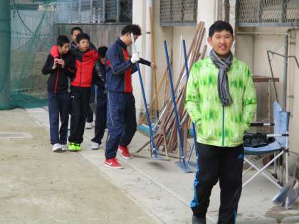 野球部は今日も部活動ではなく、側溝はじめ、グランドまわりの掃除に来てくれています。確かめてはいませんが、おそらく有志のボランティアです。