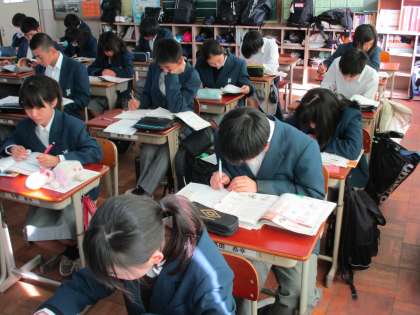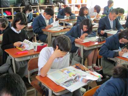 1年は体育の教室での学習です。昨日、2年でやっていたレポート作成です。