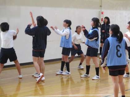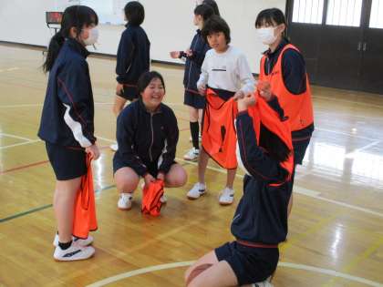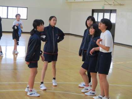 体育館へ行ったとき、丁度ゲームを終えて作戦タイムに入る場面でした。