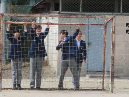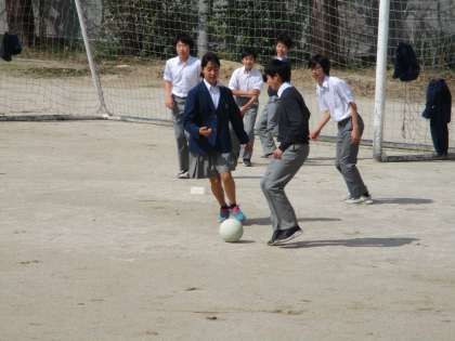 サッカー女子が男子に交じって遊んでいます。この様子も,残念ながらしばらく見られなくなります。
